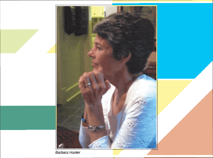 In her final years, Barbara had a fourth-floor studio overlooking a lake in Arlington, MA where she lived with her husband Larry Milner. She returned often to a cottage on the Maine coast and a sandy beach preserve on the Massachusetts Coast where she found inspiration for her writing and living of a full life. Others see the beauties of nature through her eyes and words. Her lifelong philosophy of inclusivity and seeing beauty in all gentle things has been and is her gift to others. Barbara Hunter died from a painful pulmonary auto-immune disease in March 2018 that she had been dealing with for several years.